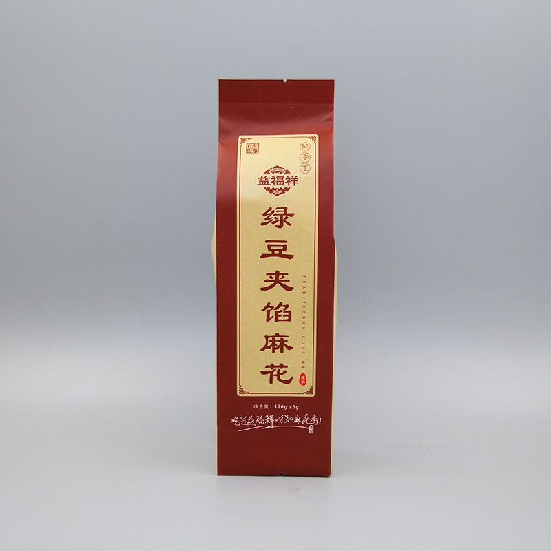 產品名稱:120g綠豆夾餡麻花+黃牛皮紙+背封帶折邊